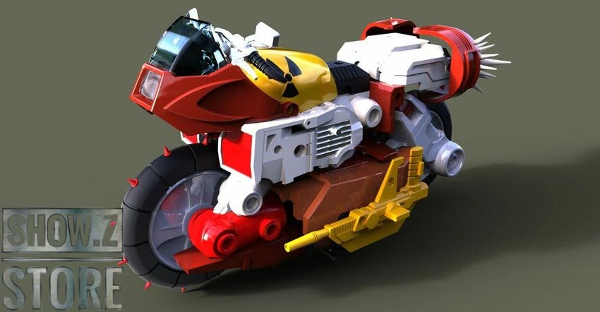 Featuring: each chest/head/arms can be exchangeable to form new robot’s motorcycle front wheels that have two different ways of transformation!