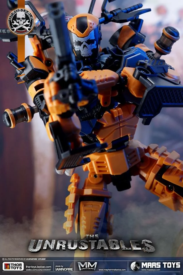Introducing Mayhem Mekanics’ first project, MM01 The Unrustables. A 1:18 scale transforming Mech Bike that when in robot mode, integrates the driver as the chest portion of the robot. Figure stands 22CM/8.7″ tall in robot mode and each set includes one bike, one rider and several weapons. Pictures are of prototype figures, final images to come.